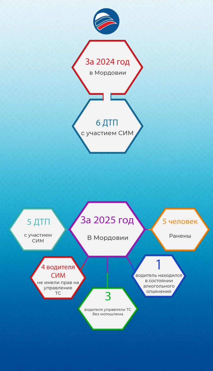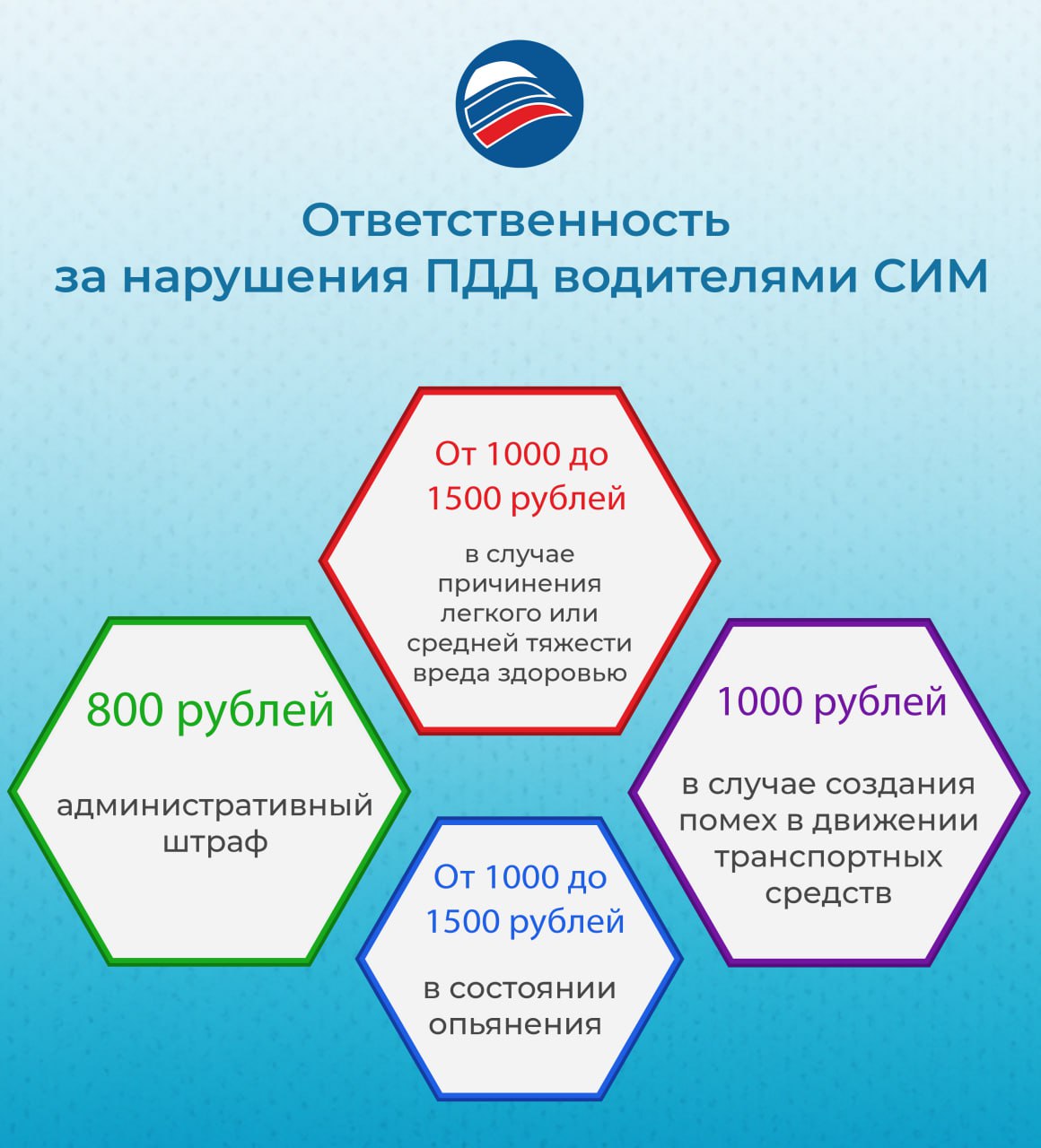В 2025 году произошло пять ДТП с участием устройств, конструктивно схожих с СИМ, но с электродвигателем мощностью от 0,25 кВт до 4 кВт, в которых пострадали пять человек (все управляли мощными СИМ). Эти ТС рассматриваются как мопеды с электродвигателем, и к водителям применяются нормы главы 12 КоАП РФ. Для управления такими ТС необходимо водительское удостоверение категории «М». В четырех из пяти ДТП водители не имели прав, в трех – ехали без мотошлема, а в одном – находились в состоянии алкогольного опьянения.