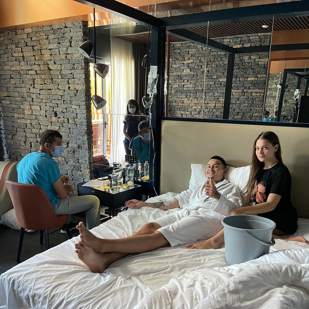 Рэпер Моргенштерн, отправившийся в медовый месяц в Турцию со своей возлюбленной Диларой, пожаловался, что отдых омрачила «как всегда капельница».