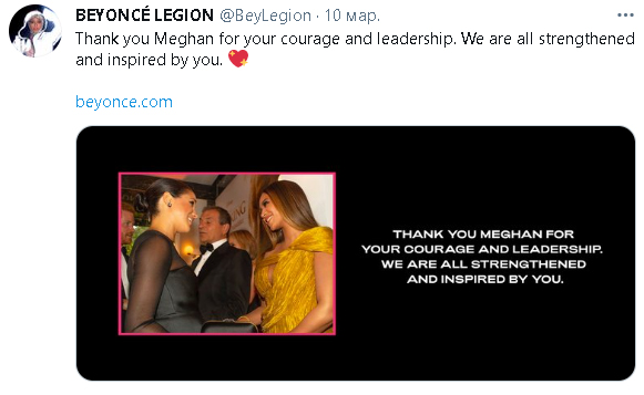 Бейонсе поддержала жену британского принца Гарри после скандала, который разгорелся вокруг их интервью телеведущей Опре Уинфри.