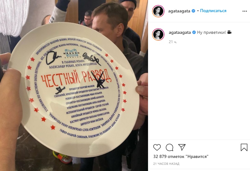 Теперь же Муцениеце анонсировала съемки полнометражного фильма «Честный развод», где она сыграет главную роль. Партнером Агаты стал Александр Робак.