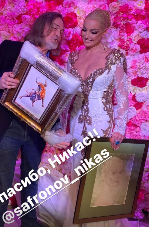 В свой юбилей она решила выступить для своих гостей на сцене театра «Тодес». После представления друг Анастасии и актер Никита Джигурда подхватил ее на руки и понес к столу, где был торт со свечками.