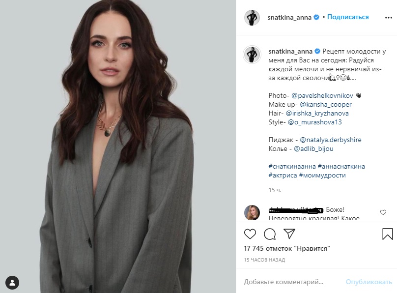 Кроме того, фото самой Анны в очередной раз собрало множество положительных слов восхищения. Поклонники особенно выделили взгляд Снаткиной, который, по их словам, «цепляет до дна» даже через экран.