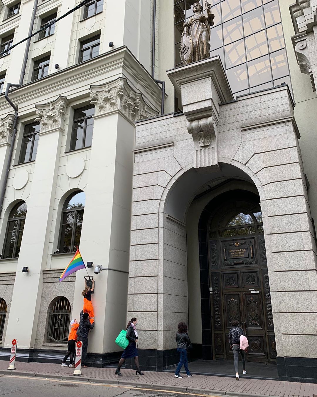 Члены группы Pussy Riot разместили ЛГБТ-символику на зданиях Верховного суда, Басманного ОВД, Администрации президента, Минкульта, ФСБ. Об этом участница движения Надежда Толоконникова рассказала в своем Instagram.