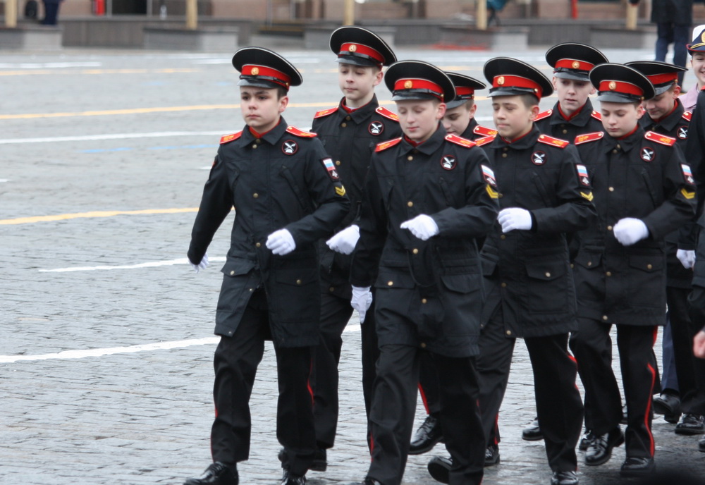 Один из первых на параде - расчет "Юнармии". К движению в стране присоединились уже 800 тысяч молодых людей и девушек.