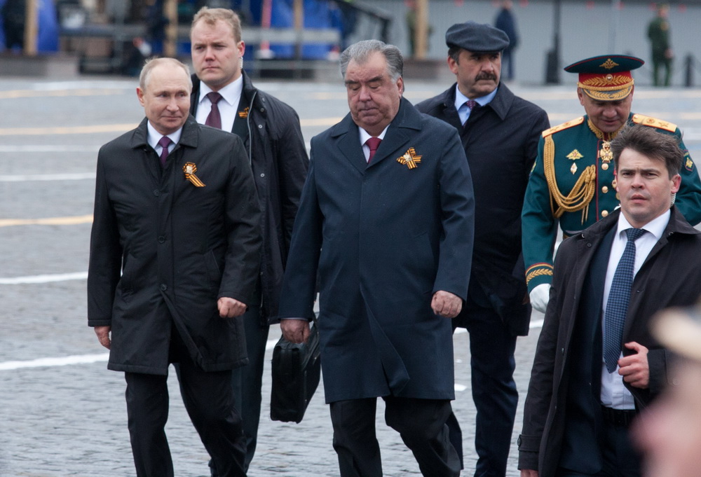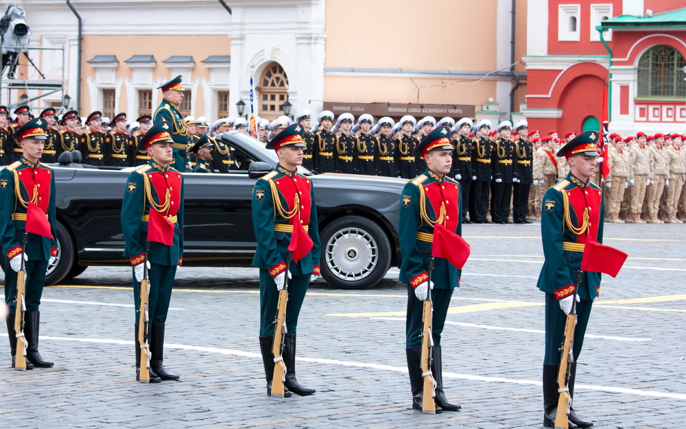 Одними из первых на площади появились президент РФ Владимир Путин и президент Таджикистана Эмомали Рахмон. Отметим, что почти каждый четвертый житель Таджикской ССР в годы ВОВ ушел на фронт. Из 300 тысяч отправившихся воевать жителей республики 92 тысячи не вернулись домой.