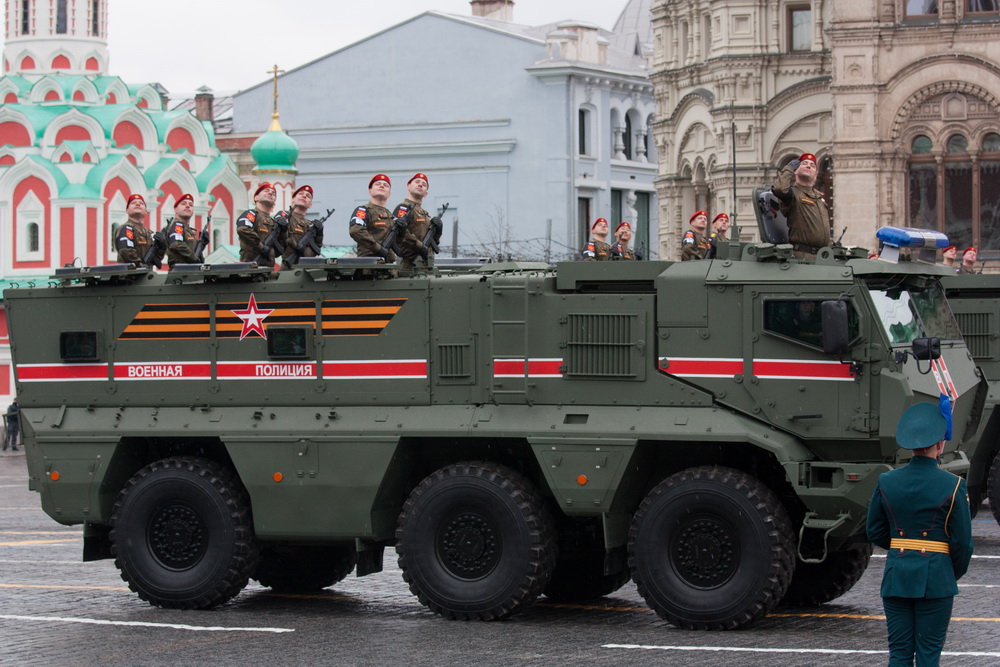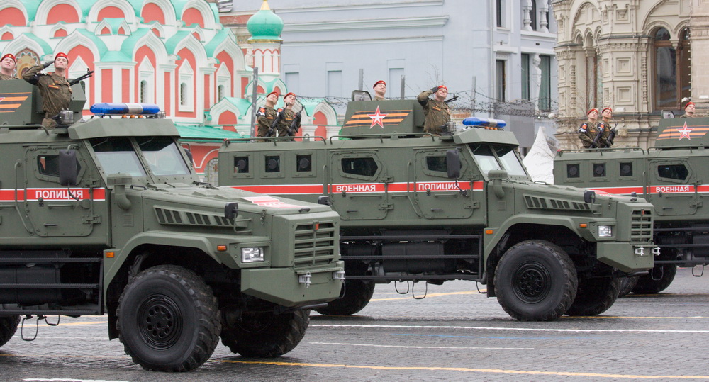 Автомобили "Патруль" и бронеавтомобили "Тайфун-К" военной полиции.
