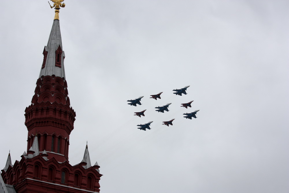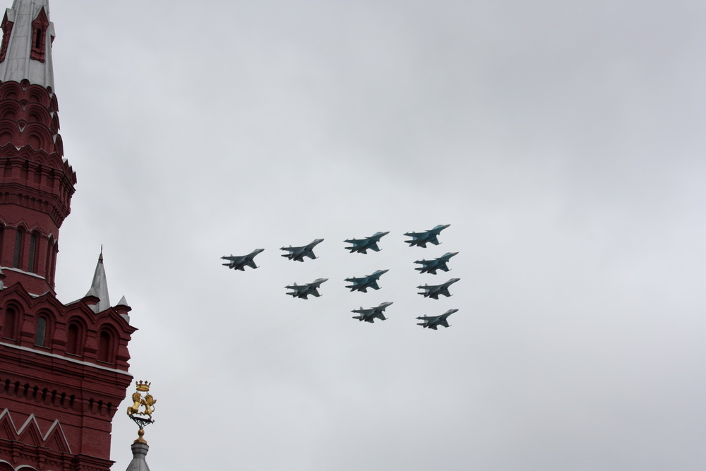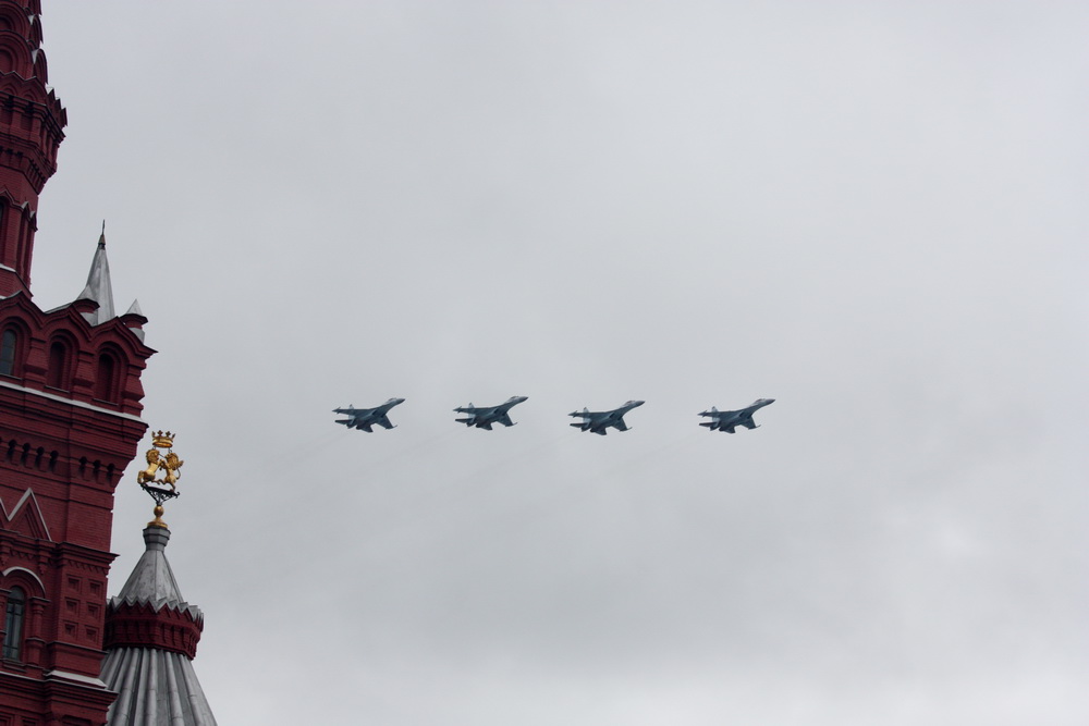 В составе механизированной колонны прошли более 190 образцов военной техники, в том числе легендарные Т-34, а также новейшие танки Т-90М "Прорыв" и Т-14 "Армата". В небе над Красной площадью на скорости от 200 до 550 километров в час пролетели 76 самолетов и вертолетов.