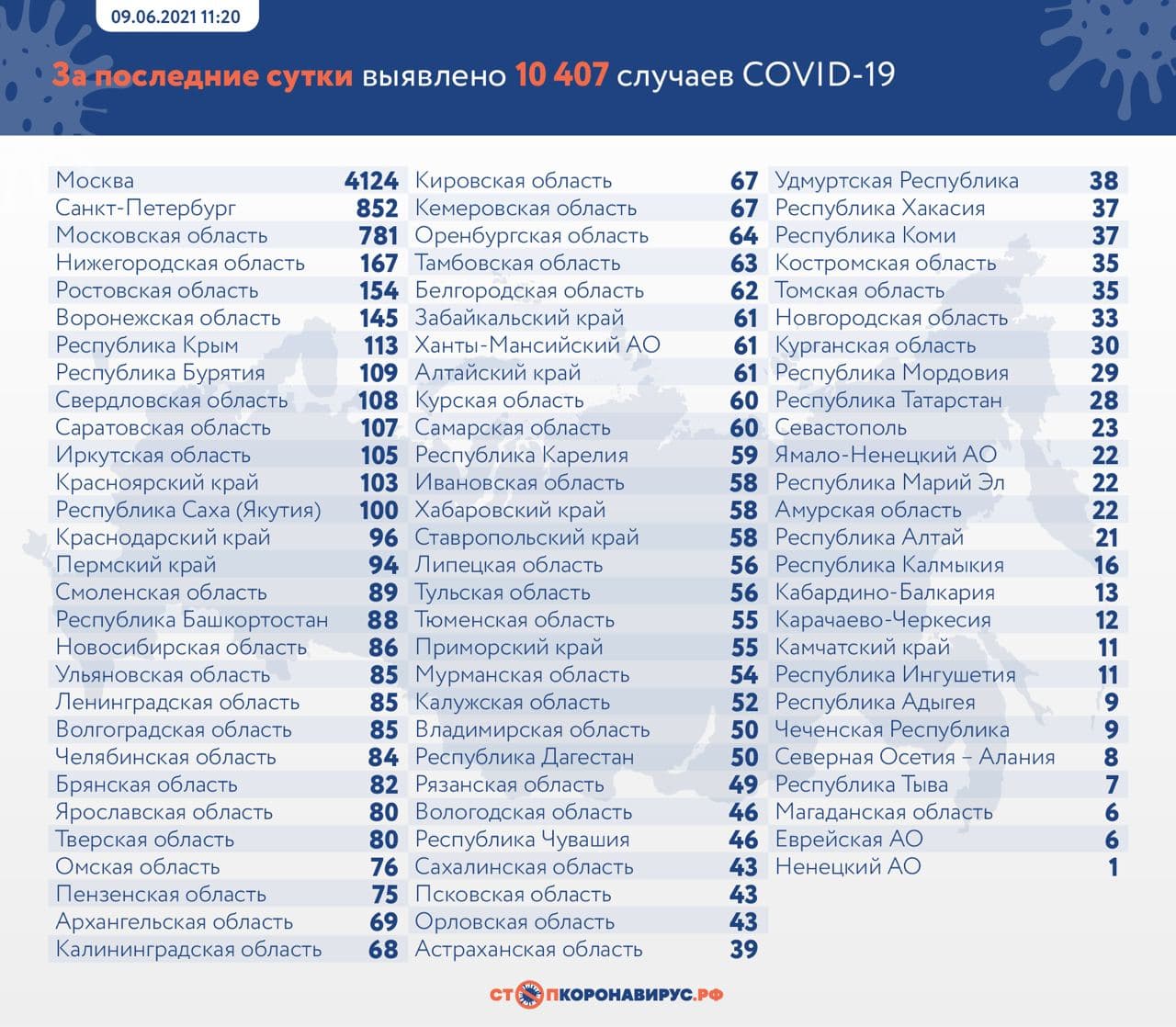 Во вторник, 8 июня, в России было выявлено 9 977 новых случаев заражения коронавирусом.