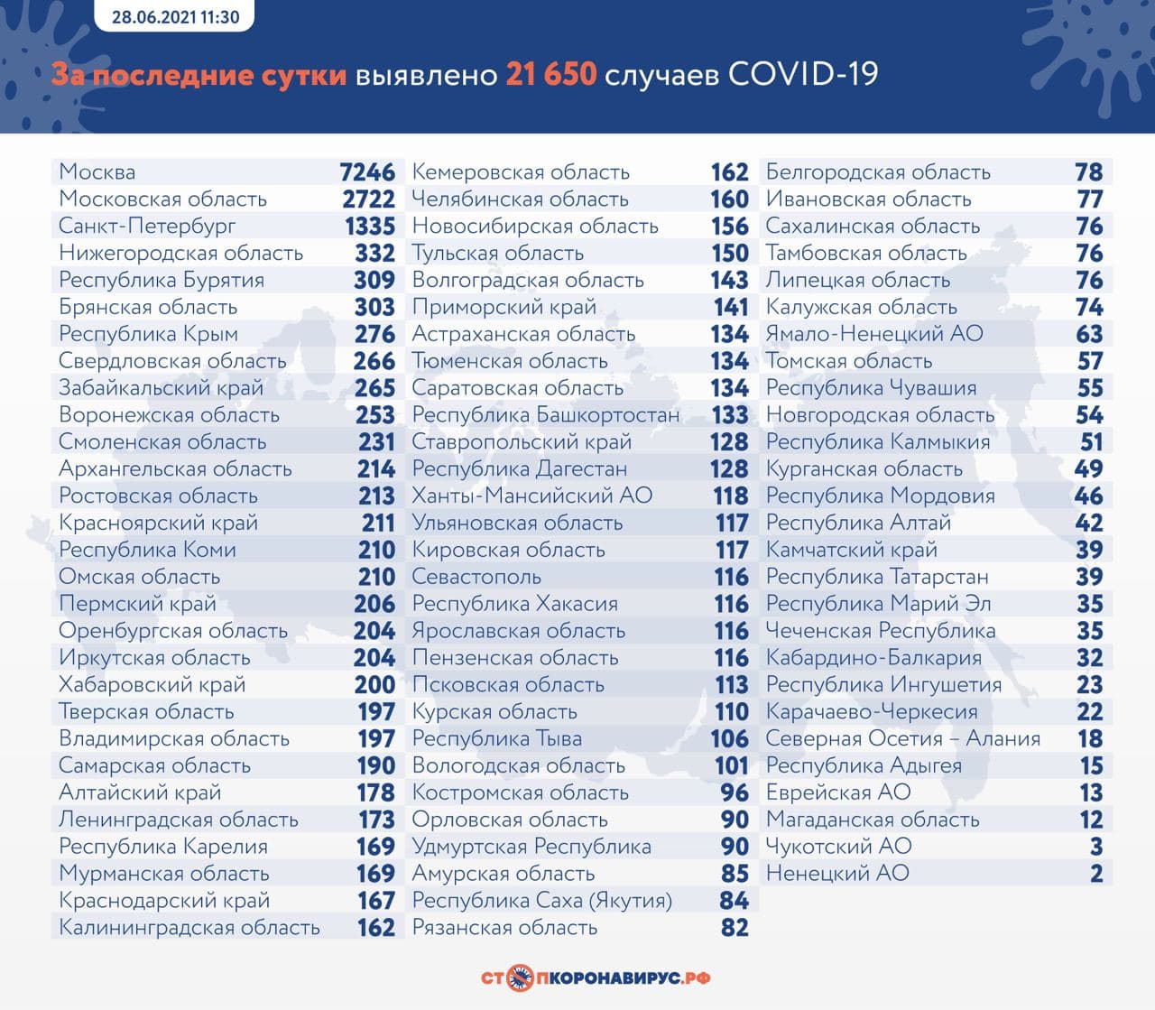 За последние сутки выявлено 21 650 заболевших новой коронавирусной инфекцией, из них 3046 (14%) бессимптомных.