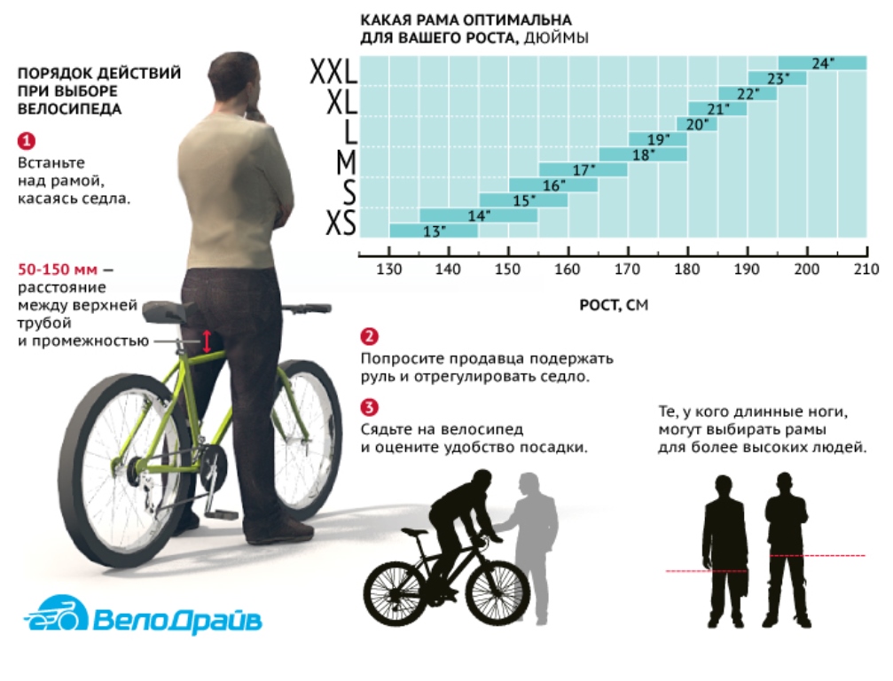 Людям с дефицитом веса и миниатюрным женщинам лучше покупать велосипеды меньшей ростовки, поскольку чем меньше рама, тем меньшим будет вес велосипеда и с ним будет проще справиться. Тем, у кого масса тела превышает средние значения, лучше выбрать байк на размер больше указанного в таблице.