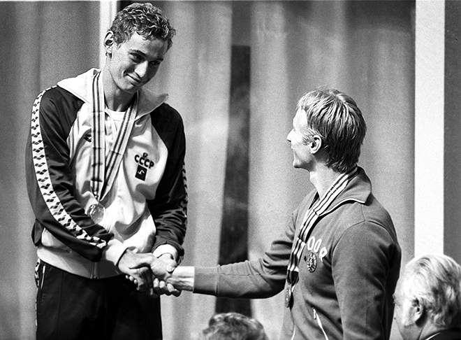 Советский пловец Владимир Сальников не просто стал олимпийским чемпионом в плавании на дистанции 1500 метров вольным стилем, он изменил историю, став первым в мире человеком, преодолевшим полтора километра менее чем за 15 минут. 14.58,27 – в 1980 году это был новый показатель возможностей человеческого организма. Сегодняшний рекорд – 14:31,02 был установлен в 2012 году китайским спортсменом по имени Сунь Ян.