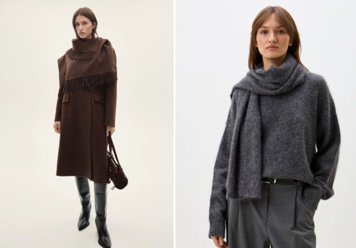 В этом сезоне, по словам стилиста, образ уютного кокона, созданного при помощи шарфа или палантина, станет ключевым. Как правило, это пальто с длинным шарфом в тон, объемные пончо, мягкие свитера или даже блузы с эффектом запахивания. Этот прием создает ощущение защиты и тепла, а также придает элегантность и легкую драматичность, отметила Никишина.