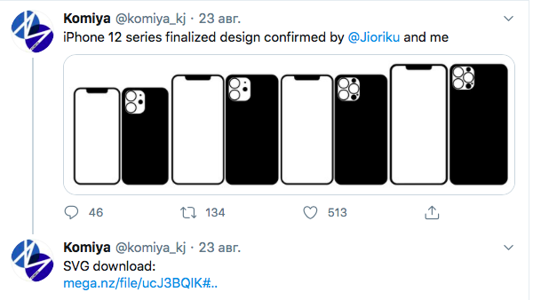 Пользователь Twitter под именем Komiya выложил на своей странице картинку, изображающую новую линейку iPhone 12 с предполагаемыми ценами на каждую модель. Отметим, ранее у этого инсайдера выходила информация относительно продукции Apple, которая в дальнейшем подтверждалась релизом устройств.