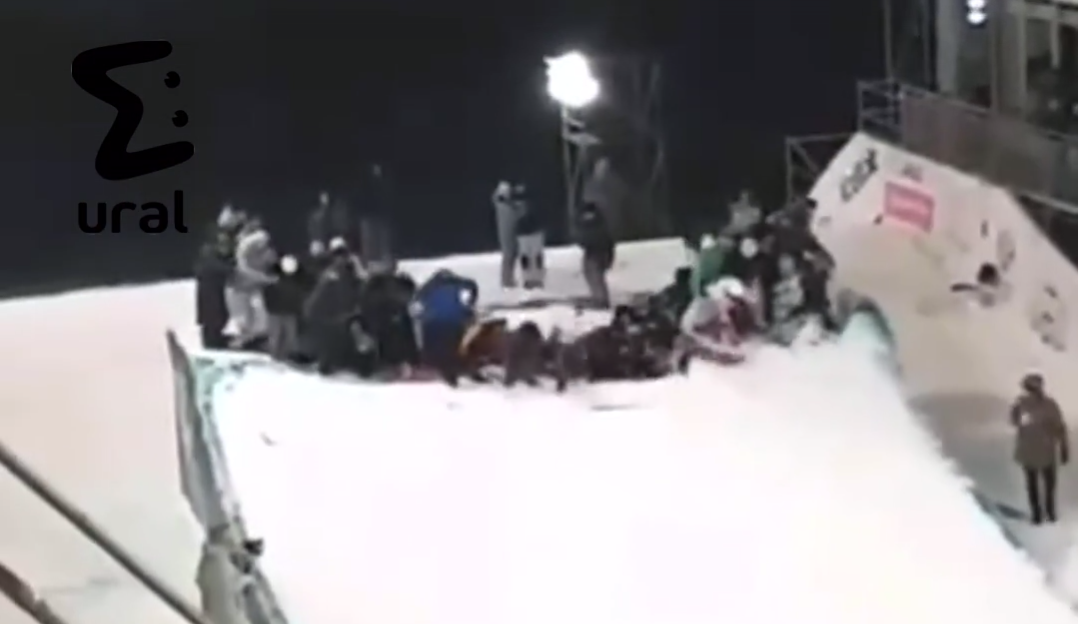 В Тюмени на соревнованиях по сноуборду при попытке сделать фото обвалился трамплин с людьми
