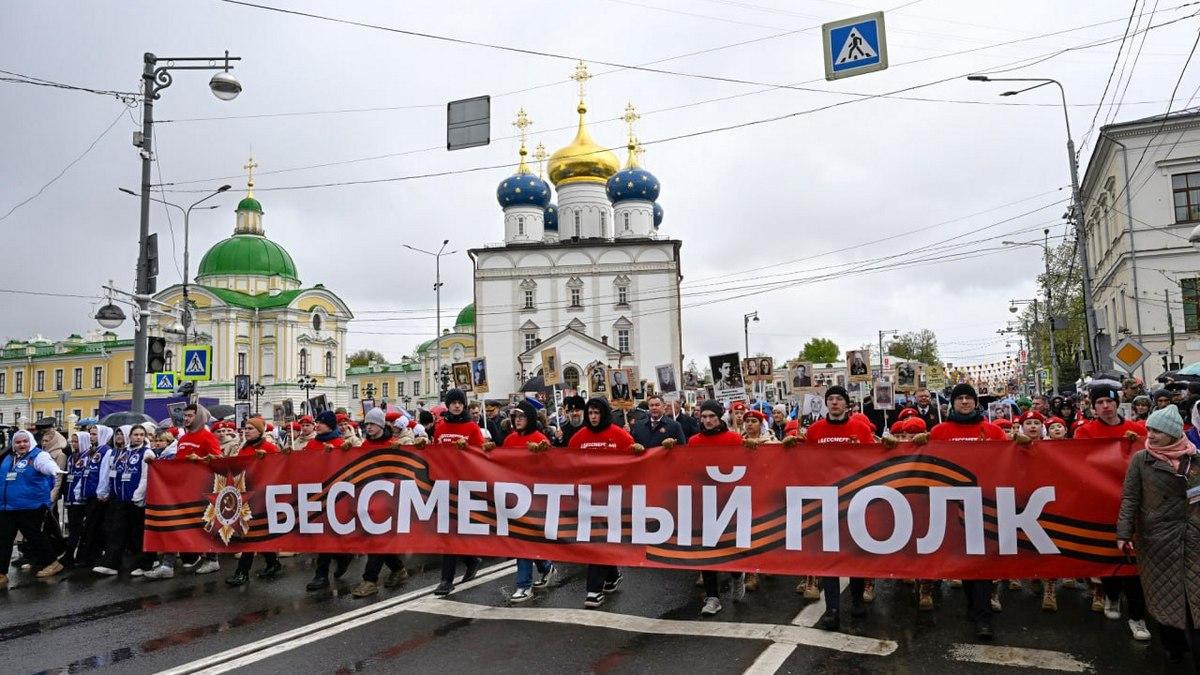 Колонну «Бессмертного полка» возглавили военнослужащие и юнармейцы, которые пронесли копию Знамени Победы, а школьники – «Полотно Памяти», которое сшили из «солдатских платков» с именами бойцов. Начиная с 2015 года «Полотно Памяти» ежегодно дополняется. Сейчас на нем увековечено 5 280 имен.