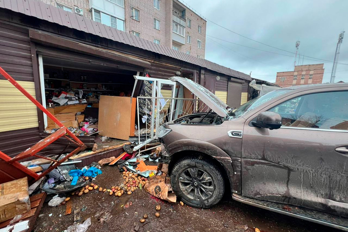 Новгородка протаранила торговый павильон рынка