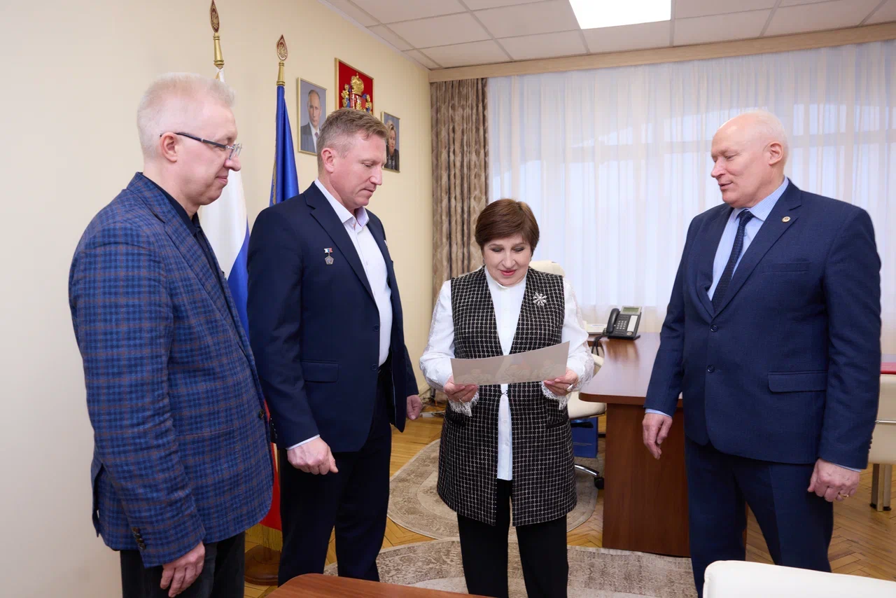 В ходе встречи состоялась церемония вручения диплома об окончании вуза с отличием. Документ космонавту передали Ольга Хохлова и заместитель председателя Законодательного собрания, директор Владимирского филиала РАНХиГС Вячеслав Картухин.