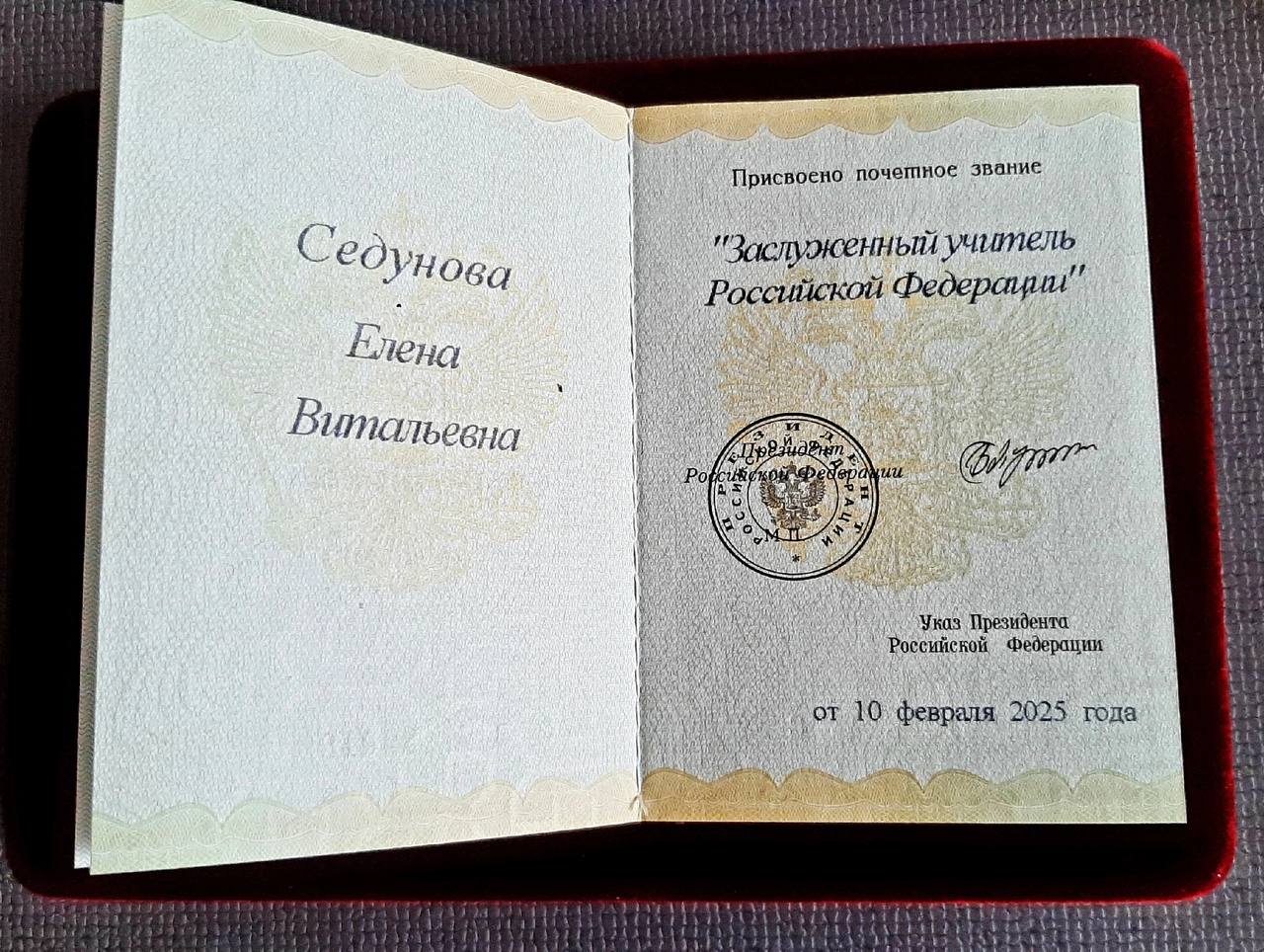 Также награду из рук 10 февраля Указом Президента Российской Федерации мне было присвоено почётное звание "Заслуженный учитель Российской Федерации". И вот сегодня в Губернаторском доме состоялось вручение государственной награды.