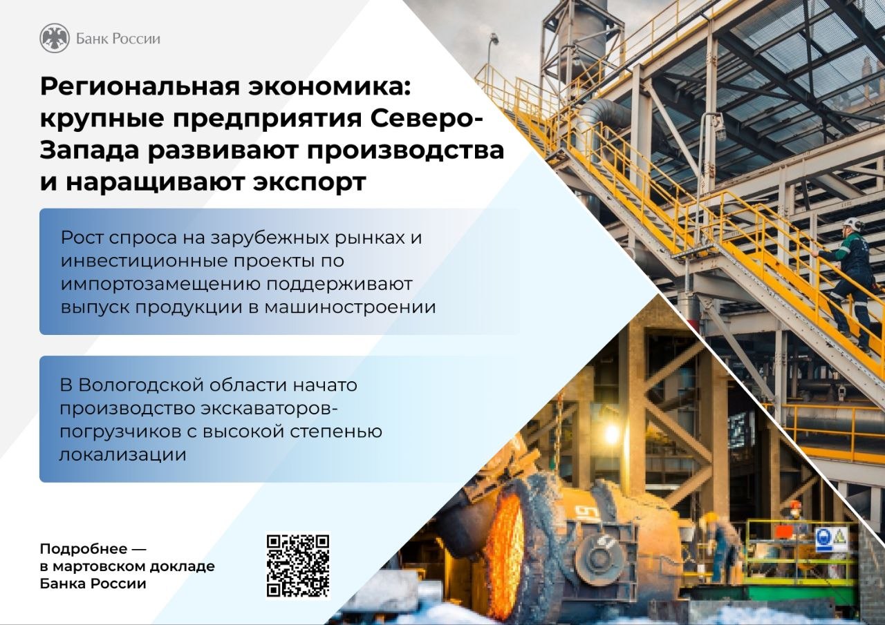 Продолжается работа по снижению зависимости от импорта благодаря реализации инвестиционных проектов, направленных на импортозамещение. Так, в Вологодской области завод приступил к изготовлению экскаваторов-погрузчиков с высокой степенью локализации. В Ленинградской области завод наладил выпуск криогенных емкостей, предназначенных для транспортировки и хранения сжиженного природного и технических газов. Такие данные содержатся в мартовском докладе Банка России «Региональная экономика»: комментарии ГУ».